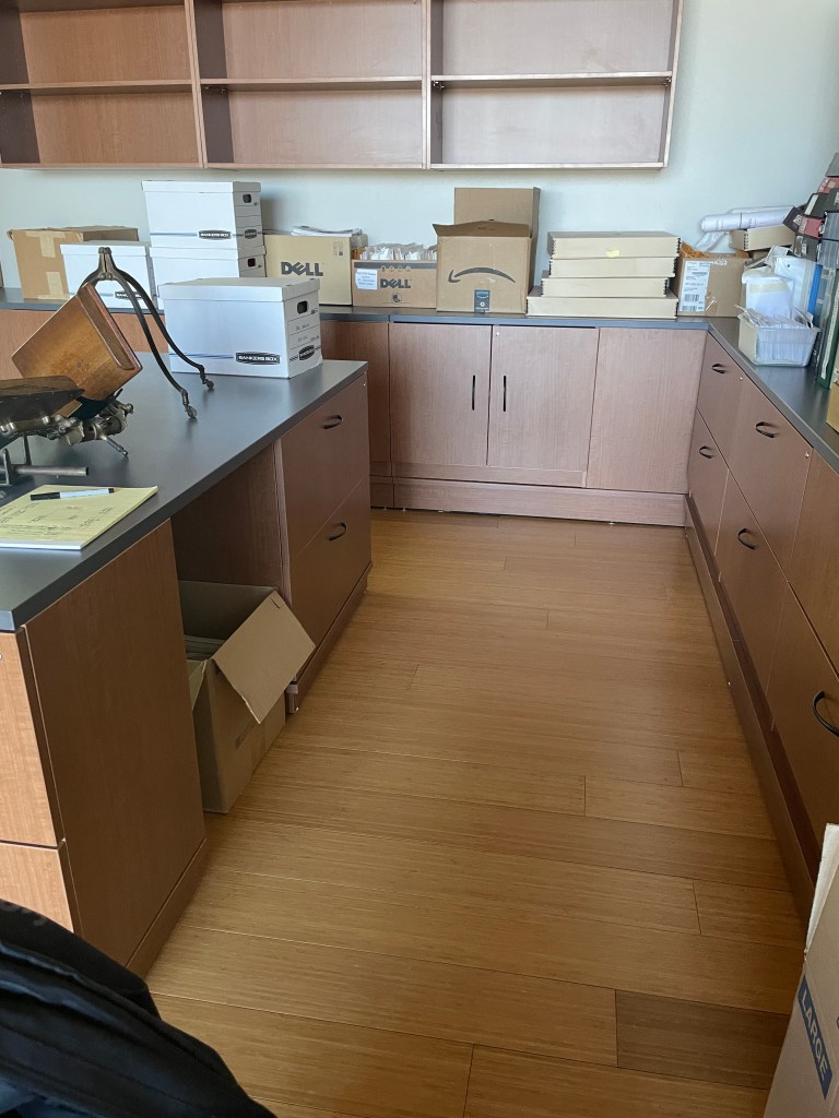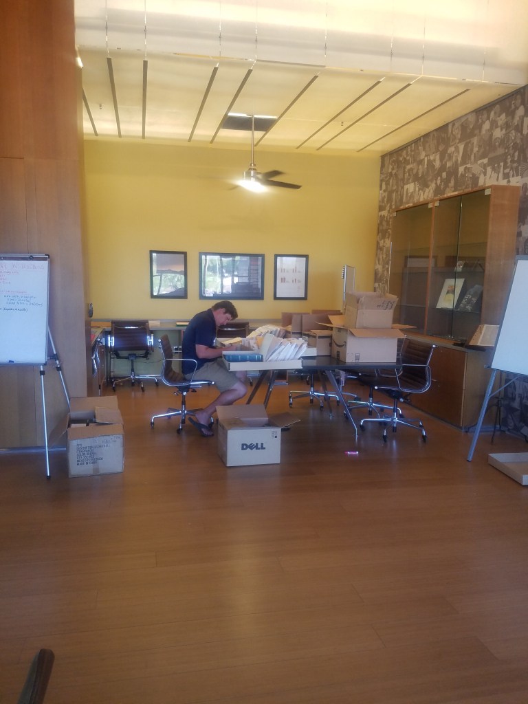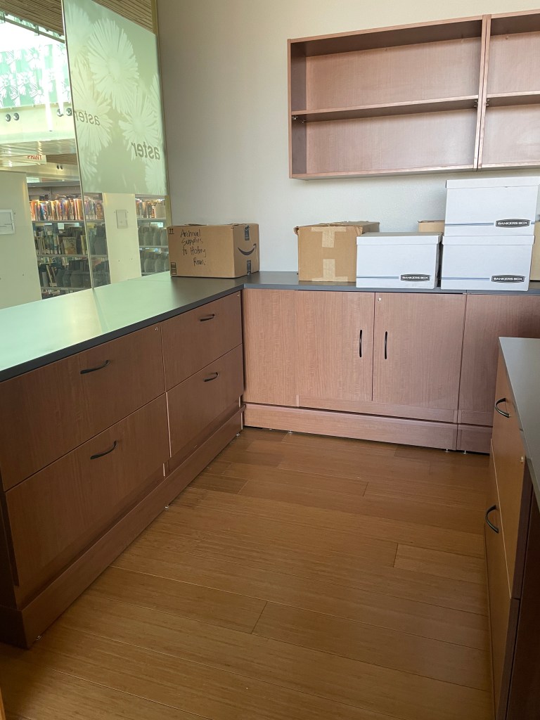 Before: The History Room in 2019. Empty boxes after sorting. Image by Summer Cherland