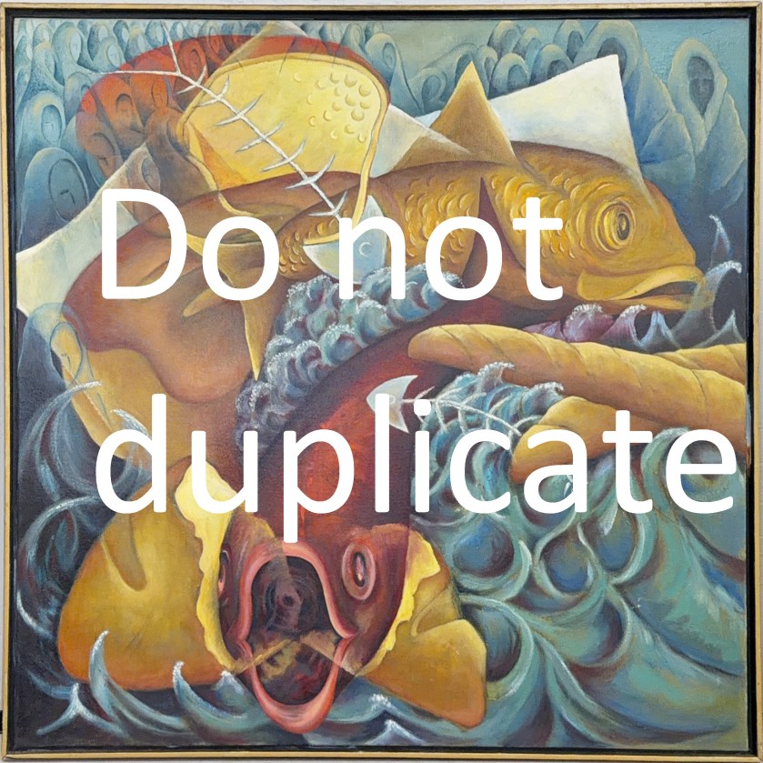 What stood out to me the most was the collection of paintings by Clendolyn Corbin, because they were all very unique, and she is an artist I would have never heard without working in this archive. Specifically, I liked the painting “Five loaves and two fishes” because the colors are very soothing and I think the subject matter is interesting.