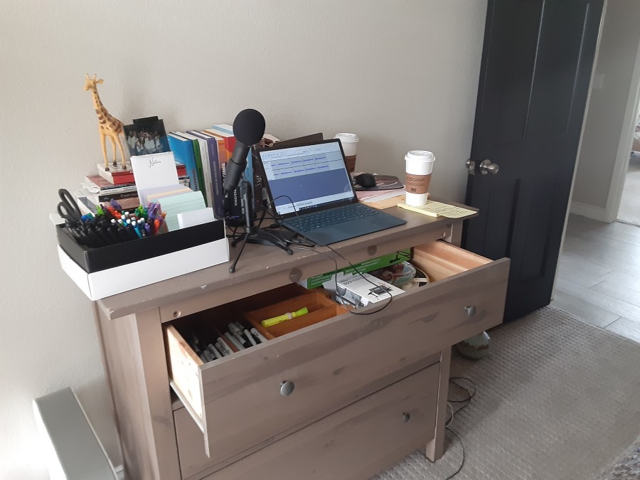 Over the last few weeks, you’ve shared photos of your new work spaces with us. It appears that many of us are taking full advantage of dining tables, kitchen counters, and guest rooms. Some of you are teaching outside, others have designed at-home studios, and many of you are figuring out how to teach and parent in the same space. Take a look at the creativity!