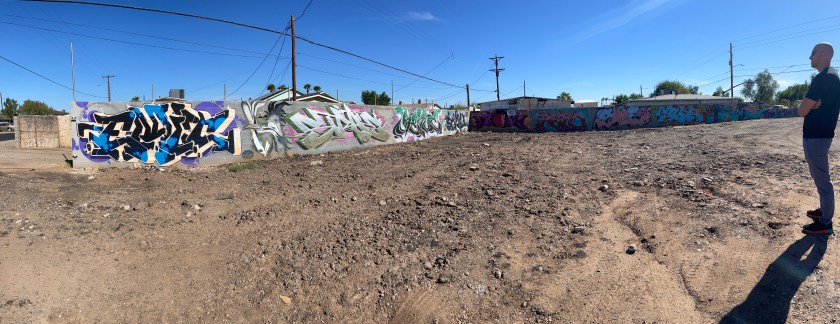 Wiley Wallace is a residential art professor at South Mountain Community College. He grew up in The Valley and has been an artist since a young age. He has also contributed some time to exploring street art in South Phoenix with Dr. Summer Cherland. Because his interview was conducted as a “drive around,” this story reads less like a biography and more like a summary of their conversation.